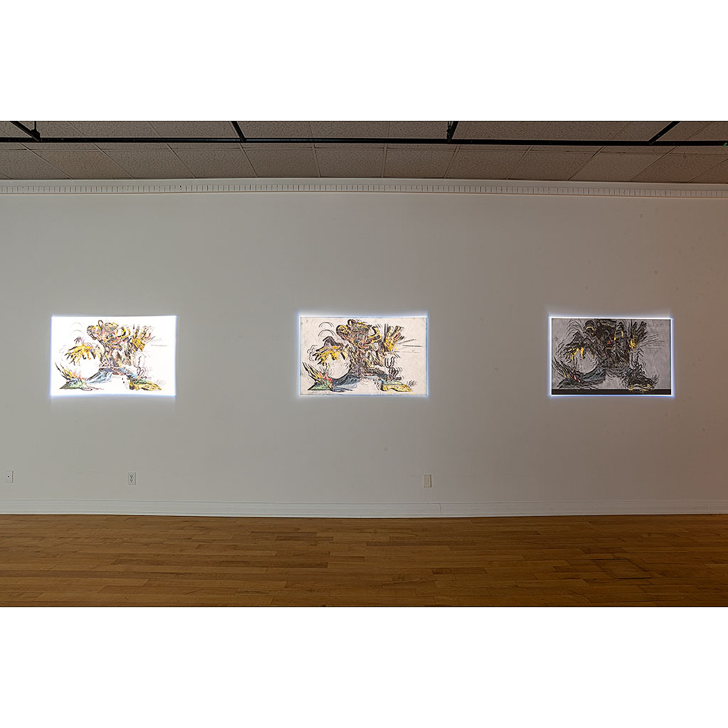 Deux dispositifs invitent le spectateur à interagir avec des dessins dénaturés, fragmentés ou déformés, projetés sur un mur ou affichés sur un écran. Par ses gestes, il peut réussir à partiellement reconstituer les dessins originaux, mais ceux-ci se défont à nouveau rapidement. Les mouvements du spectateur déclenchent aussi le mixage en temps réel de pièces sonores liées aux dessins.