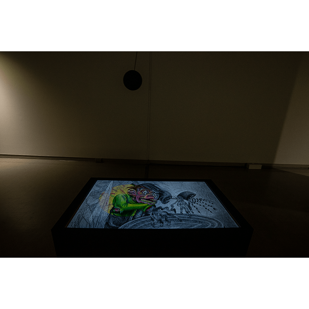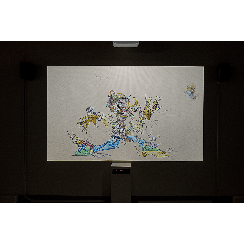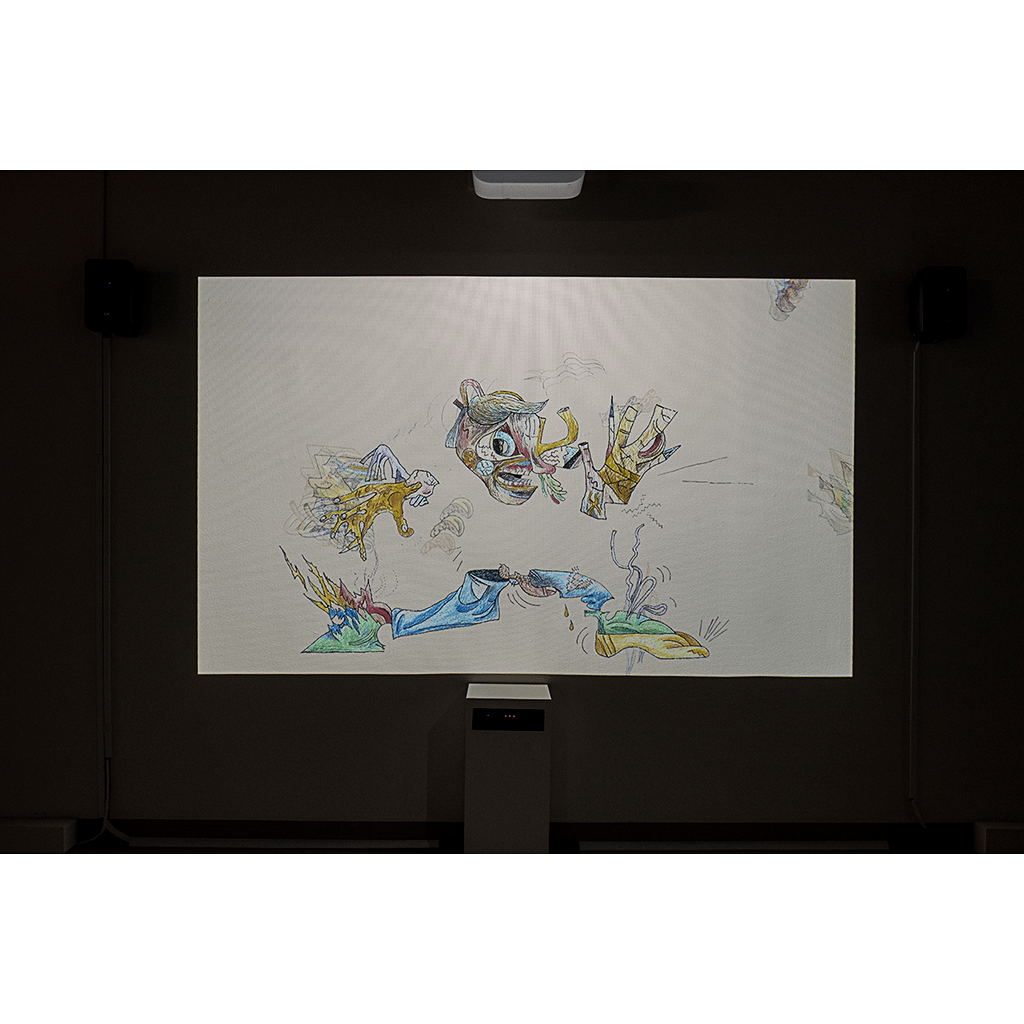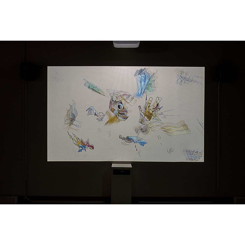 Deux dispositifs invitent le spectateur à interagir avec des dessins dénaturés, fragmentés ou déformés, projetés sur un mur ou affichés sur un écran. Par ses gestes, il peut réussir à partiellement reconstituer les dessins originaux, mais ceux-ci se défont à nouveau rapidement. Les mouvements du spectateur déclenchent aussi le mixage en temps réel de pièces sonores liées aux dessins. Les dessins sont l’œuvre d’Hugo Gaudet-Dion qui a également composé les pièces sonores.