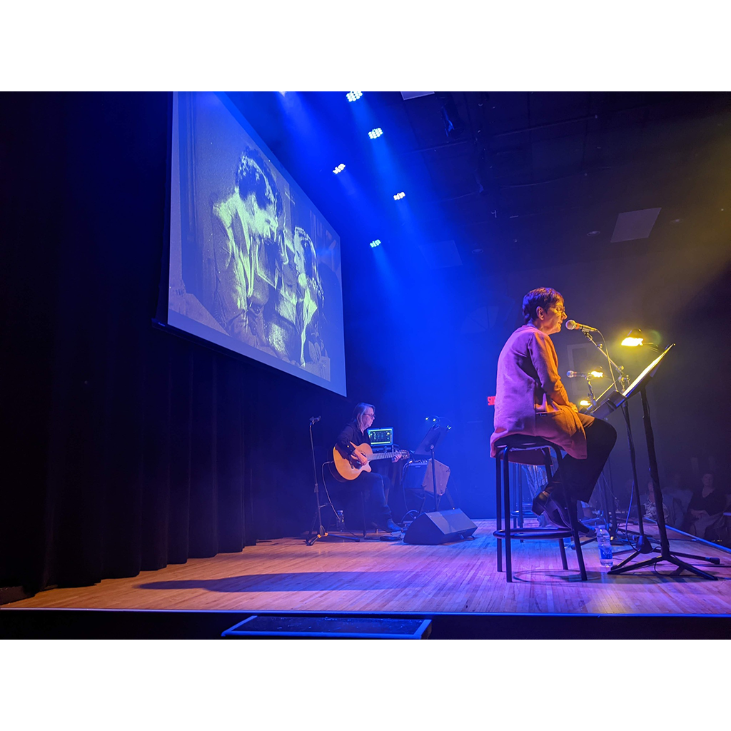 Pour réaliser ma vidéo scénique, j’ai utilisé des photographies tirées du Fonds Conrad Poirier de Bibliothèque et Archives nationale du Québec. Les images montrent des sujets humains dans des actions en lien direct avec les personnages et les évènements présentés dans les récits des auteurs. La projection des images est très lente avec des fondus prolongés. Elle agit comme un décor discret en appui aux textes lus.