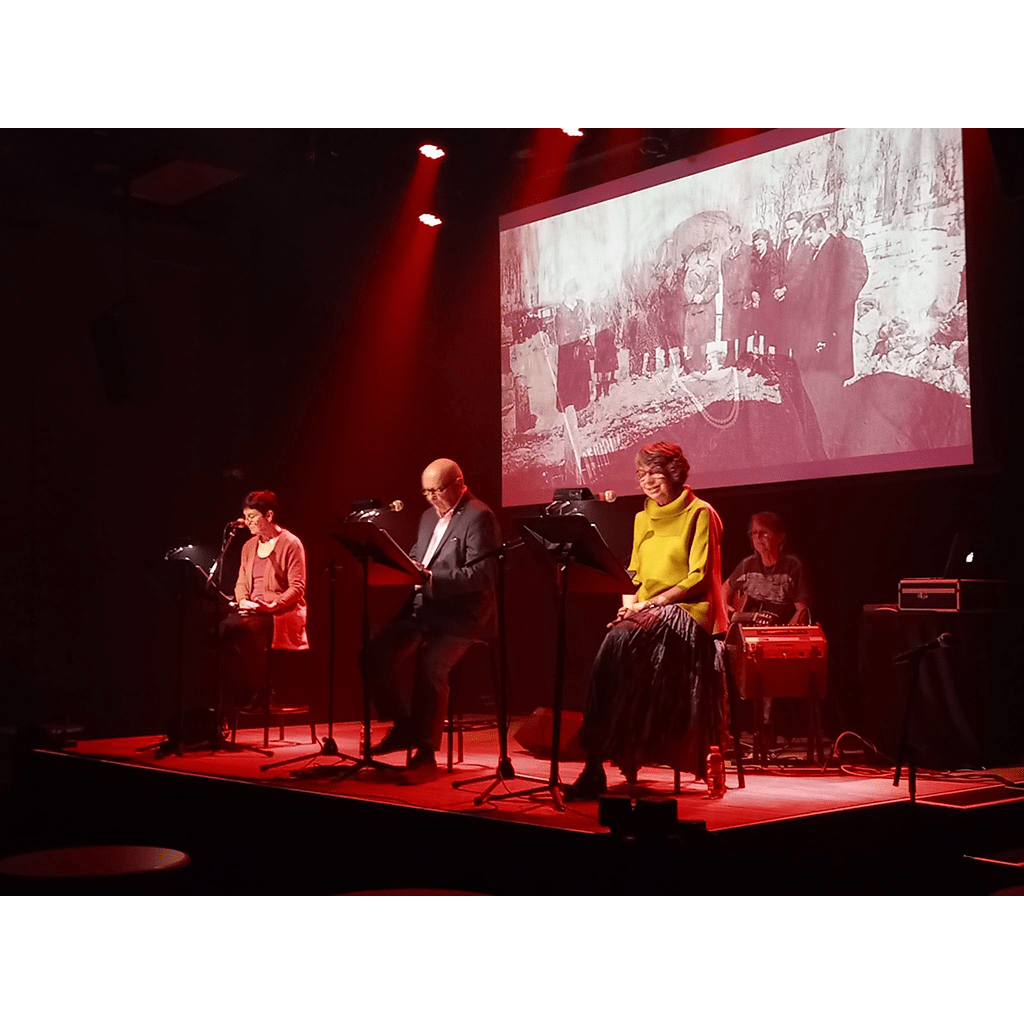 Lui à jamais a été mis en lecture sous la direction de Sasha Dominique, avec accompagnement musical de Louise Poirier et vidéo scénique de moi-même. La performance a été produite par la Maison des arts littéraires au Cabaret La Basoche.