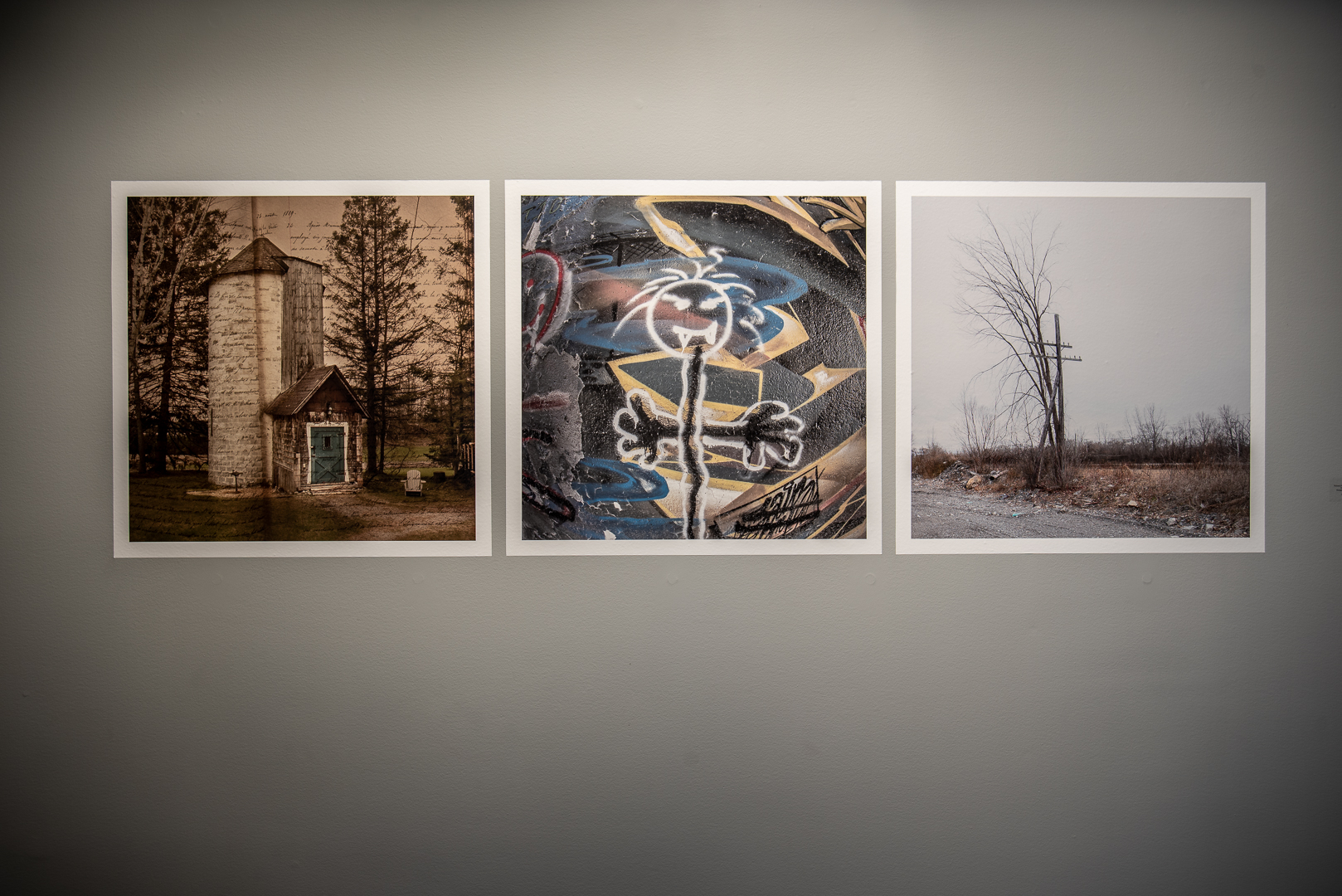 J’ai réalisé ce projet conjointement avec Richard Perron et Richard Robesco. Origines propose une série d’œuvres photographiques sur les commencements cachés du présent des choses. La thématique aborde les traces des gestes fondateurs qui animent le territoire et ses collectivités avec pour objectif de mettre en évidence les ponts qui existent entre le présent et ce qui le précède, à l’encontre de la culture de l’oubli. L’accrochage présente six triptyques photographiques, chacun constituant un microrécit autonome. La création de chaque triptyque a suivi un procédé dialectique où les trois artistes se sont répondu l’un l’autre. Les panneaux d’un triptyque agissent en consonance et en dissonance.
