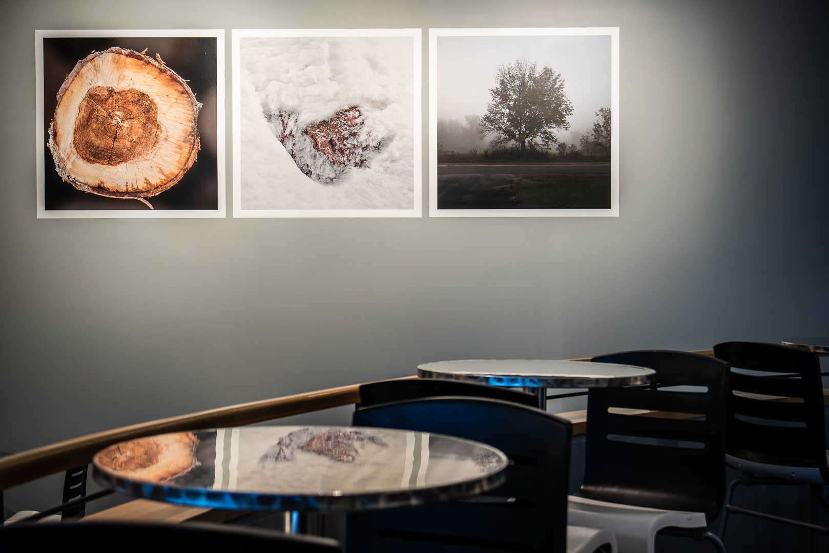 Trois panneaux de 76 x 76 cm, jet d’encre sur vinyle autocollant