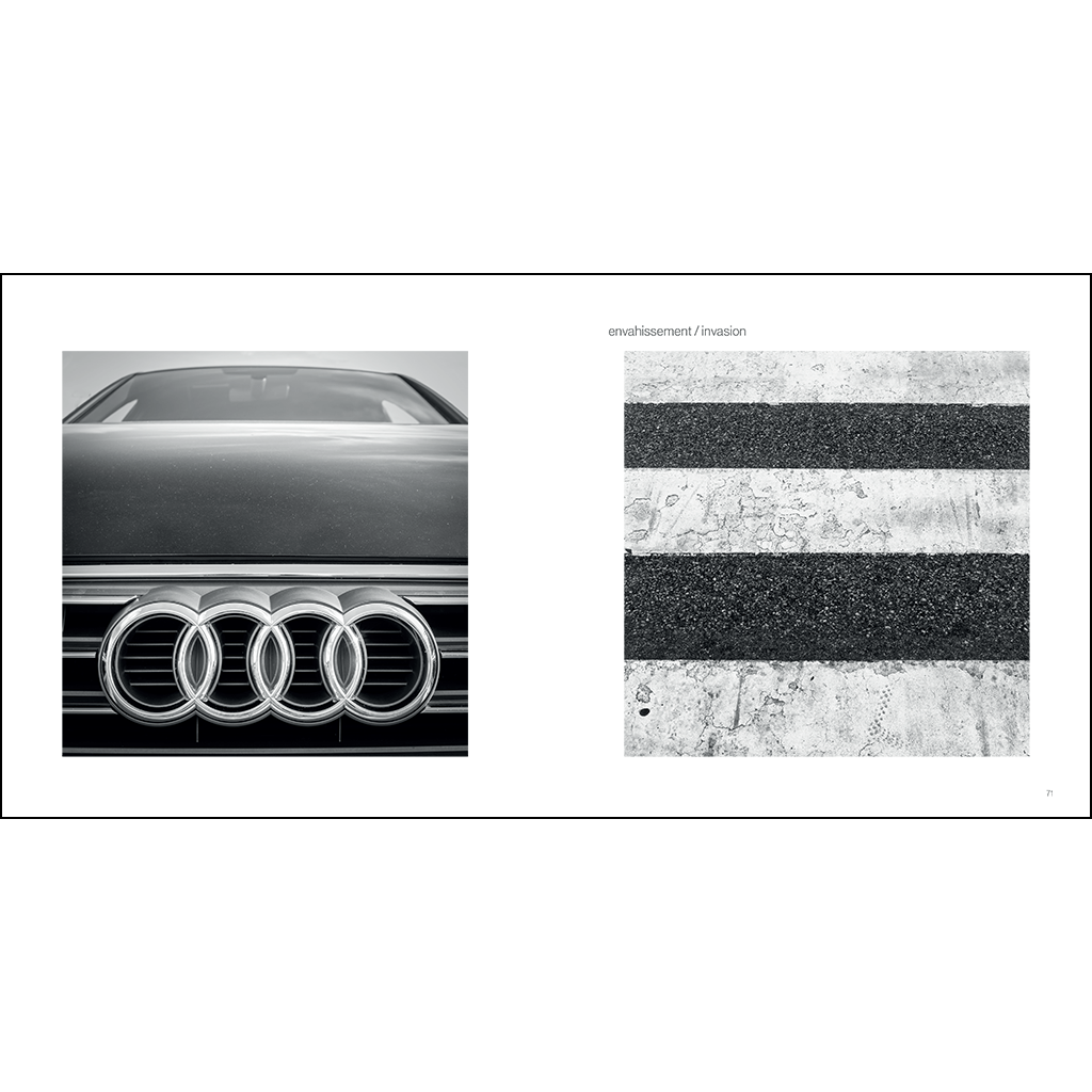 Ce livre reprend le corpus des 54 photographies du renku photographique sans objet. Les images se présentent comme une série particulière de diptyques. Dans chaque cas, l’image de droite d’un diptyque se retrouve à gauche dans le diptyque suivant.